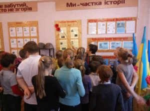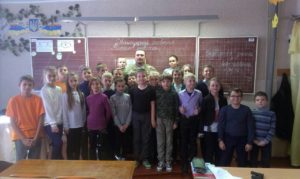 11-12 жовтня в нашій школі пройшли спортивні змагання для учнів 2-4 класів “Козацькі розваги” та 5-8 класів “Ми нащадки козаків”, присвячені Дню захисника України в межах місячника національно-патріотичного виховання. Діти з захопленням відповідали на питання вікторини про козаків, змагалися за звання “найсміливішого” та “найспритнішого”. З 9 жовтня розпочала роботу творча майстерня по виготовленню вітальних листівок, що будуть відправлені військовим на передову. Керівник гуртка “Пам’ять” Бобух Майя Анатоліївна організувала екскурсію до шкільного Музею бойової слави. Учні познайомилися з музейними експонатами, дізналися про захисників Краматорська у роки Другої світової війни та учасників АТО. Вчителі історії демонстрували документальні фільми про козацтво, вояків УСС, УПА. Класні керівники провели тематичні бесіди та виховні години. На одну з виховних годин завітав батько учня нашої школи Шевченко Роман Миколайович, учасник бойових дій АТО.