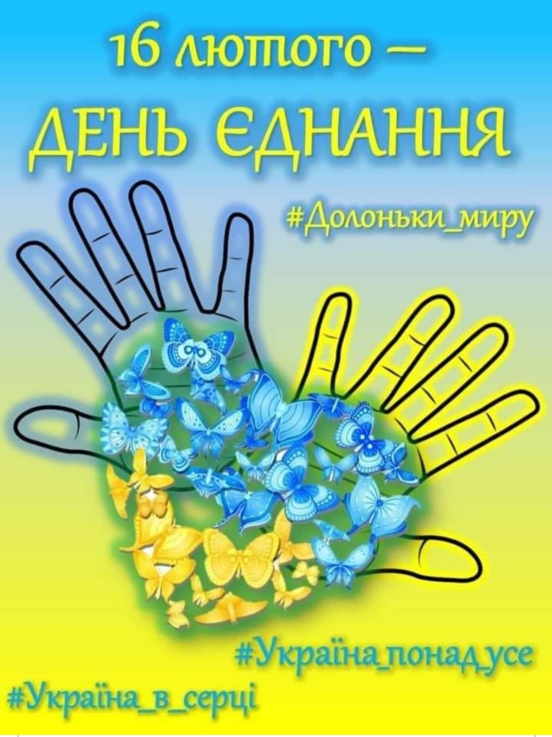 16 лютого 2022 року указом Президента України №53/2022 оголошено Днем єднання. Наша освітня спільнота долучилася до акції “Долоньки миру”
